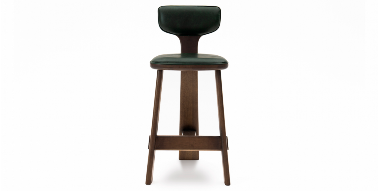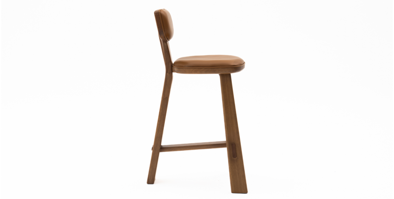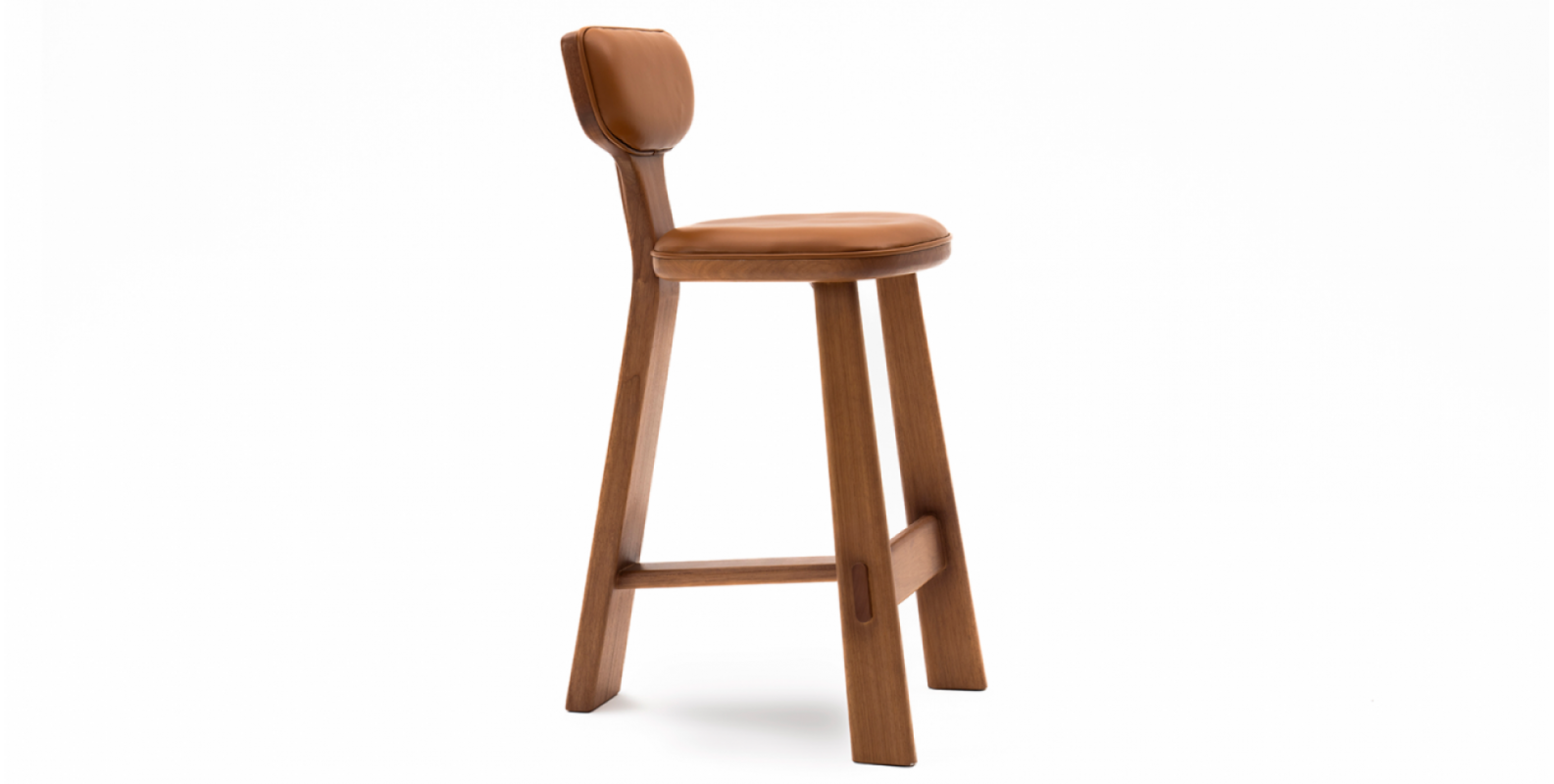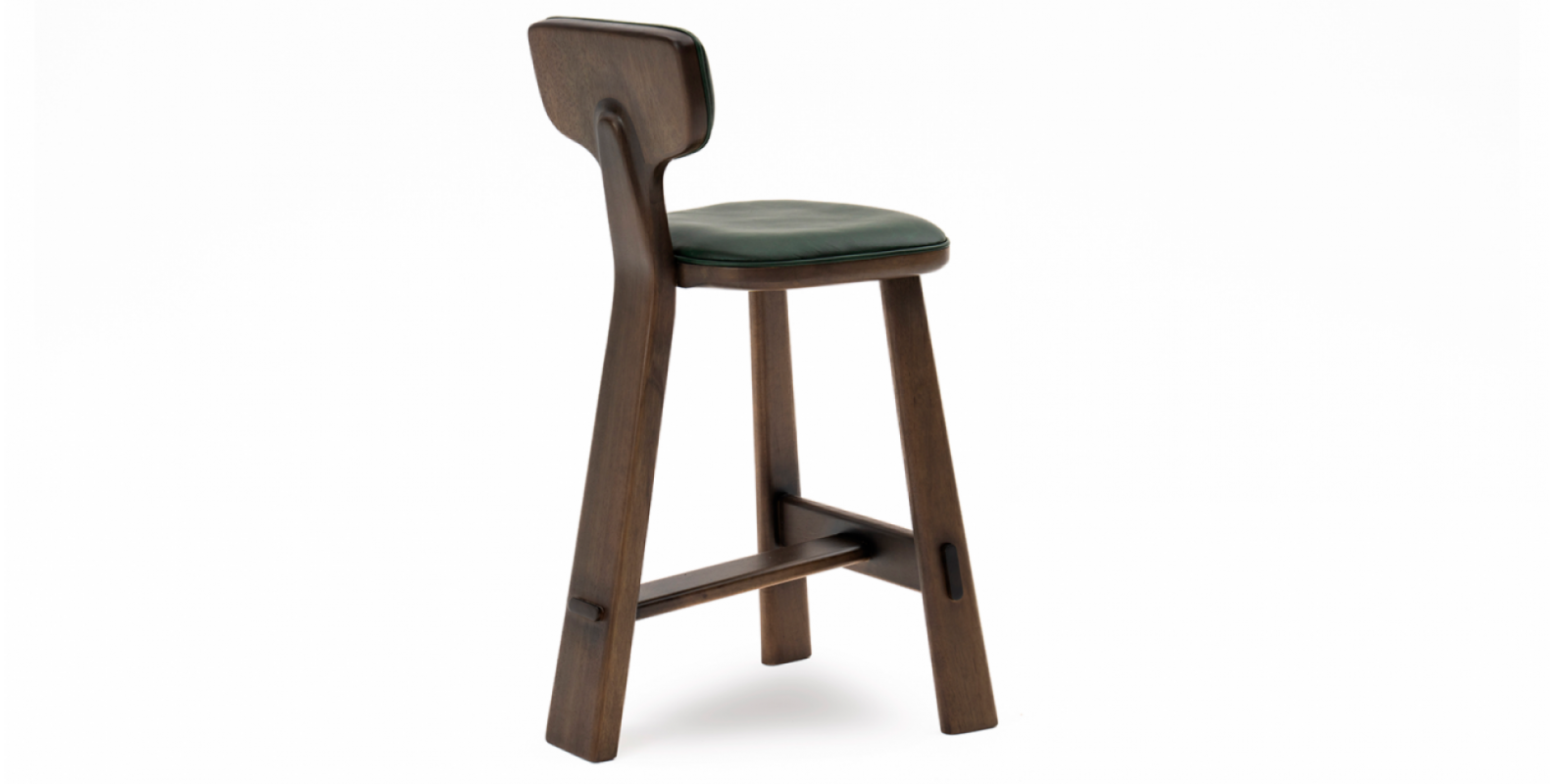 A baqueta Estandarte, por Samuca Gerber, representa o diálogo entre o tradicional e o moderno, com a madeira como protagonista reinterpretada em formas atemporais e atuais. O couro, no encosto e no assento, pode se harmonizar com a madeira em composições monocromáticas ou contrastantes