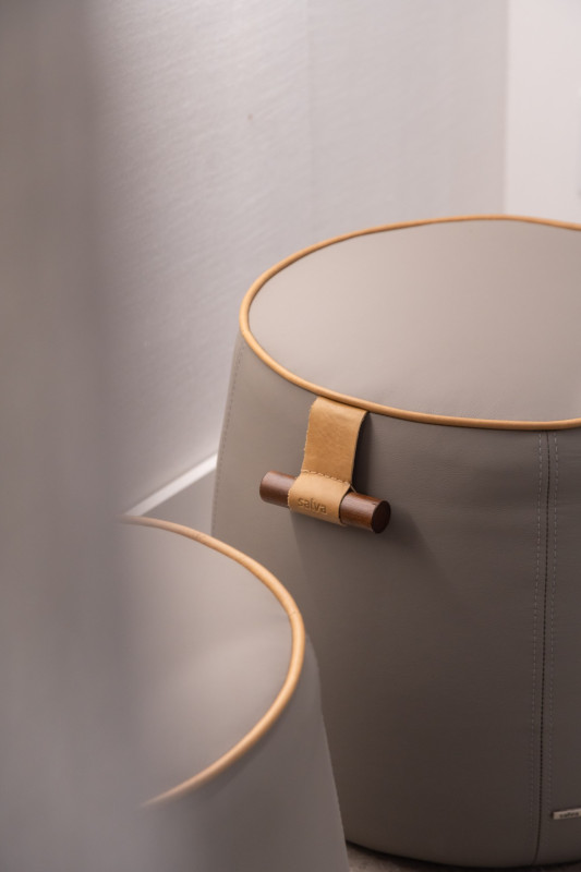 O Pufe Jatobá combina elegância e personalidade em um design arredondado e suave. A costura destaca suas formas, enquanto as alças decorativas adicionam um toque delicado e sofisticado à peça.
