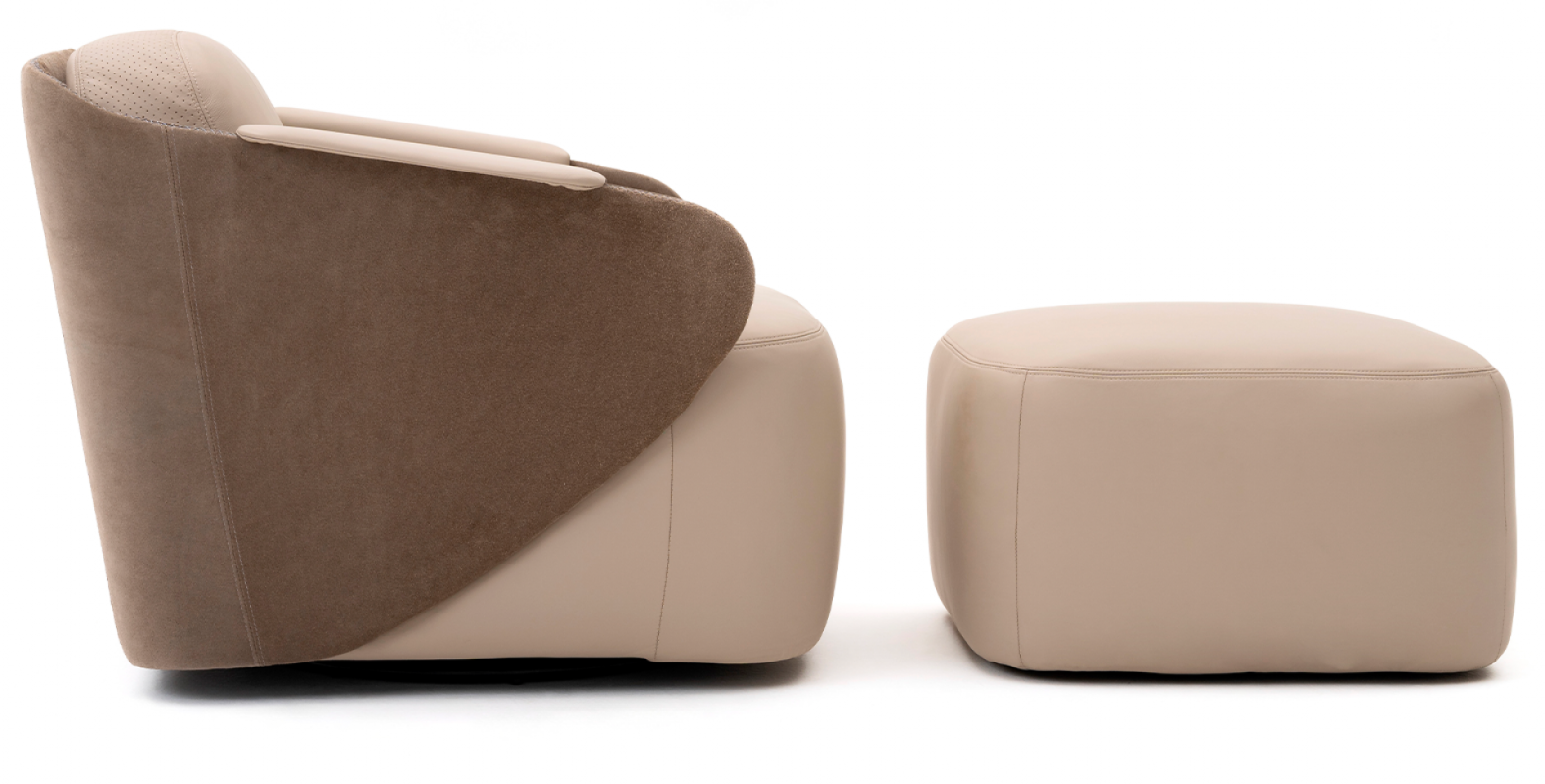 A Poltrona Manaí, inspirada no peixe-boi da Amazônia, é uma criação de Fabricio Roncca que une conforto e leveza. Suas formas arredondadas proporcionam um visual lúdico e acolhedor, enquanto o sistema giratório e os detalhes sofisticados elevam seu design.