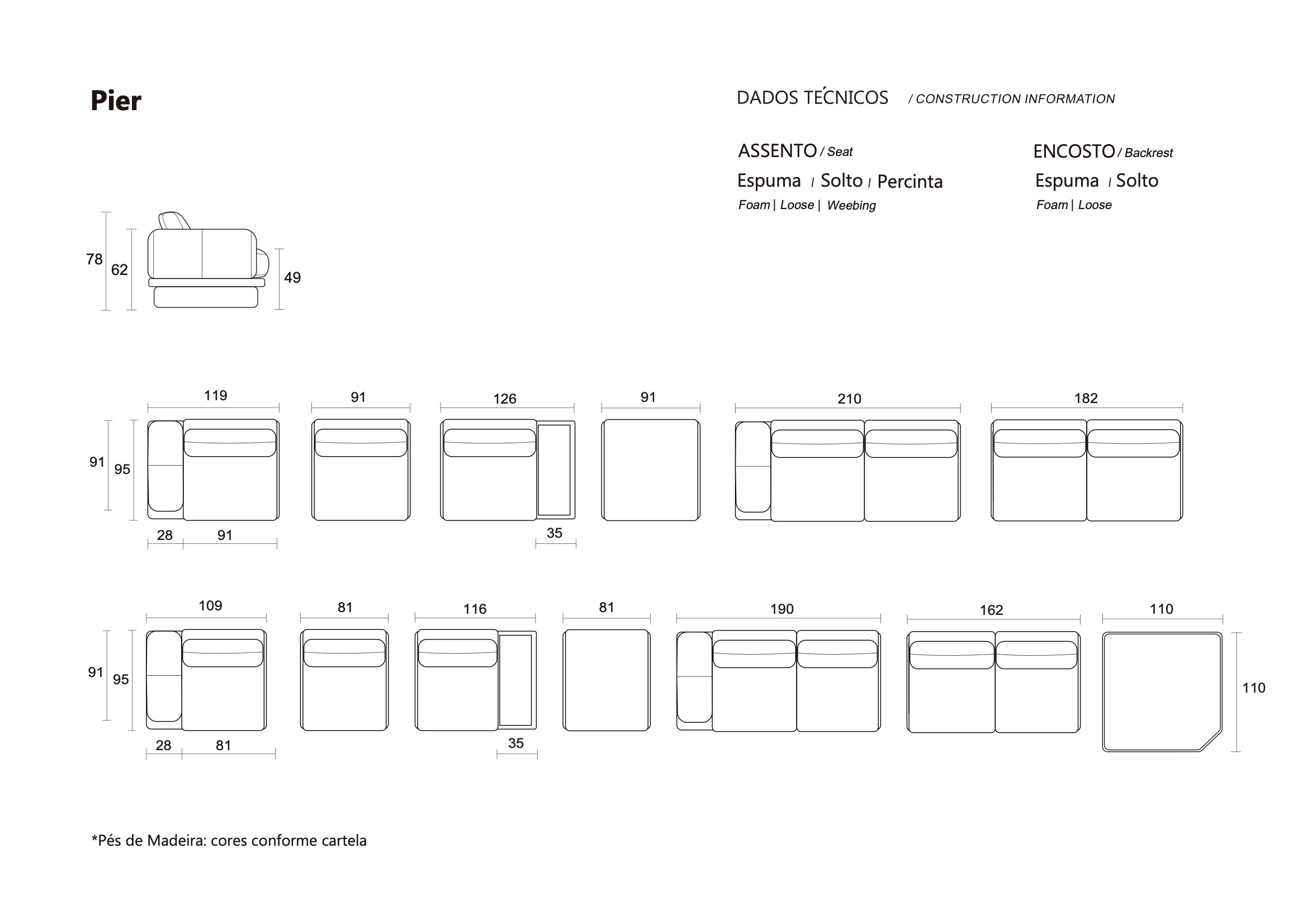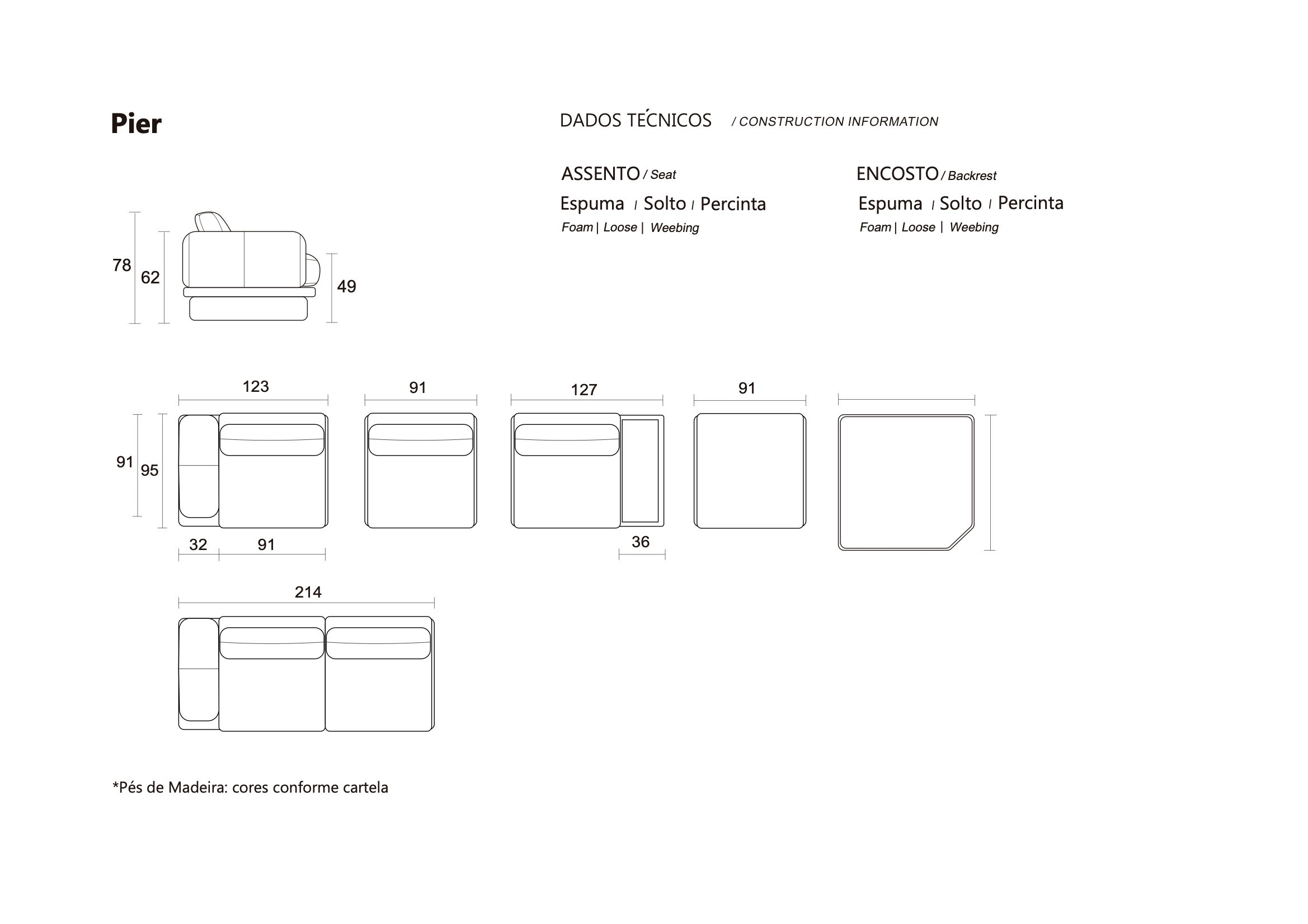 Assinado por Samuca Gerber, o Sofá Pier é um sistema modular de desenho contemporâneo. A plataforma elevada por pés em madeira cria uma base sólida com leveza visual. Almofadas soltas ampliam o conforto e a liberdade de composição, tornando-o uma solução versátil e sofisticada para diferentes projetos.