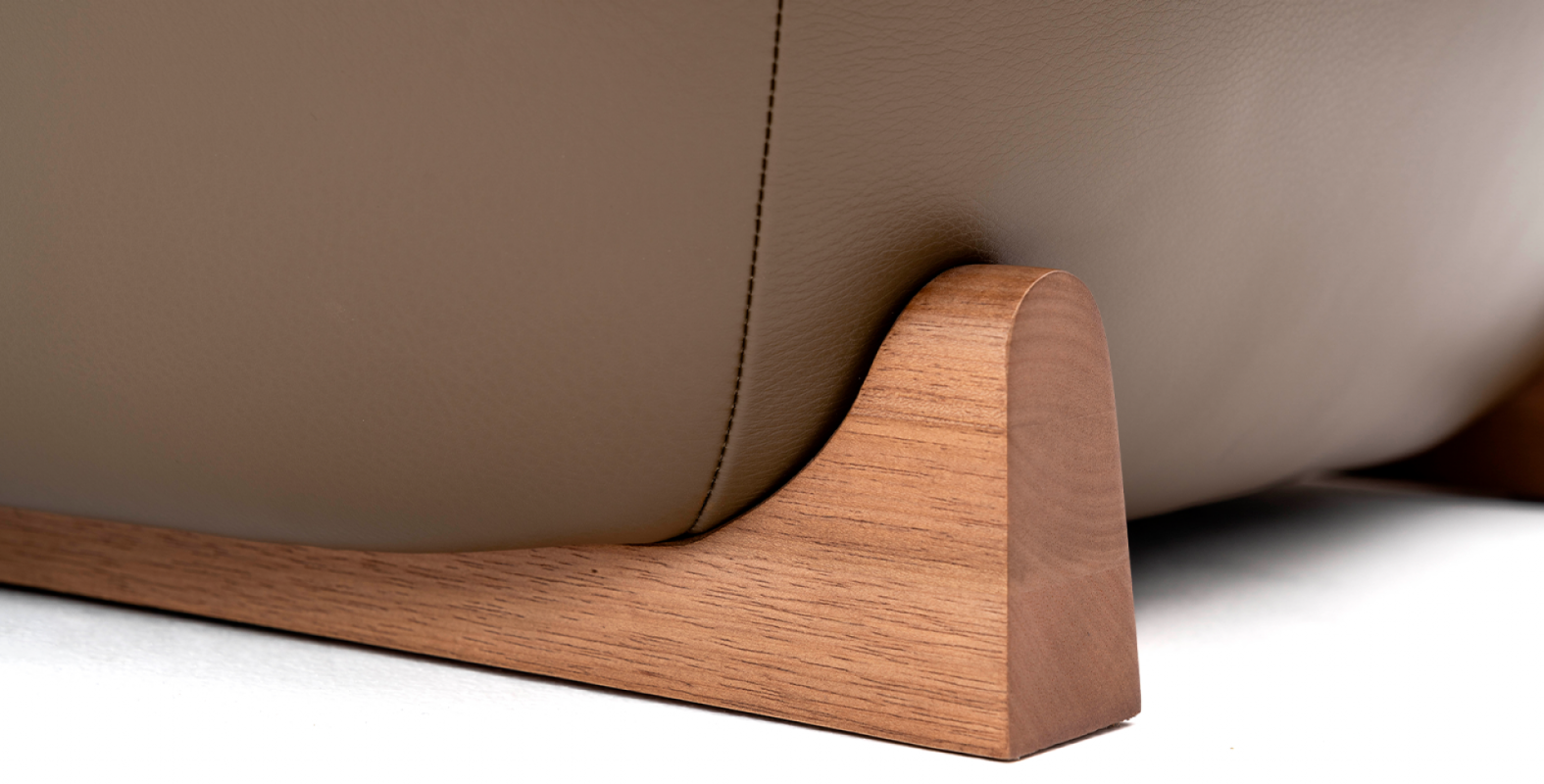A poltrona Prosa é uma fusão harmoniosa entre os elementos e que a compõem. Ela se apresenta como um diálogo entre o couro e a madeira esculpida que a envolve, criando uma interação única entre materiais que se complementam.