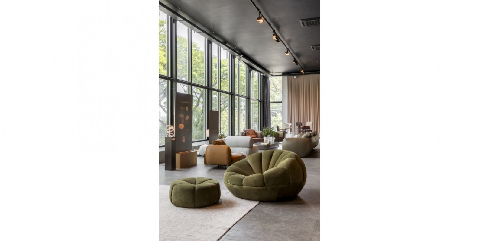 Fazendo referência direta à cultura regional do Rio Grande do Sul, o pufe Bergamota remete ao fruto ícone do estado, que endossa os invernos frios e acompanha bons momentos de famílias e amigos em todos os cantos. A característica singular dos gomos do fruto descascado foi aplicada nas formas curvas e volumosas da poltrona, que convida ao relaxamento e descontração. Uma peça única, cheia de significados e com um protagonismo encantador que marca presença e provoca o sentar de forma ímpar.