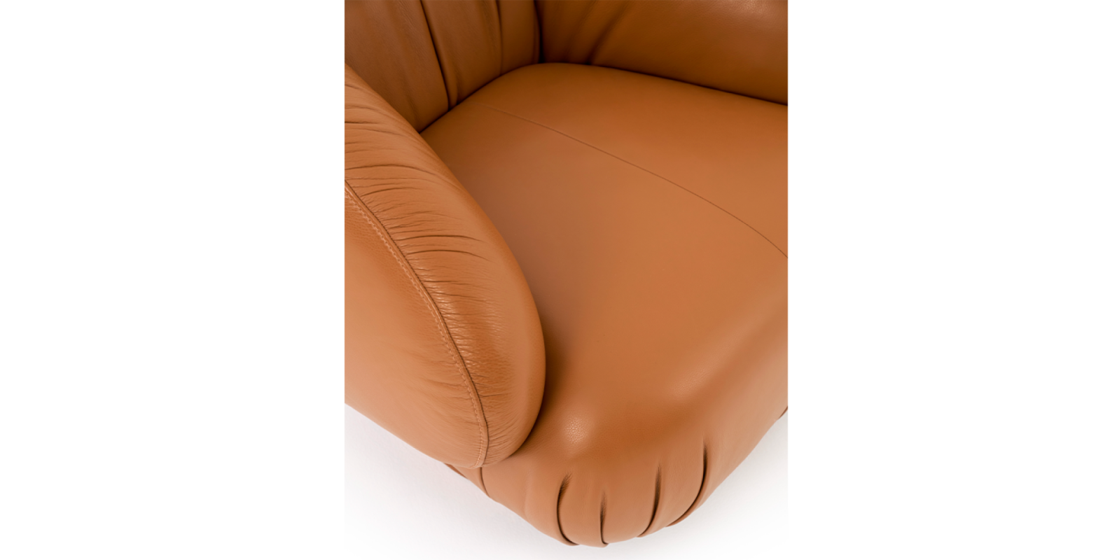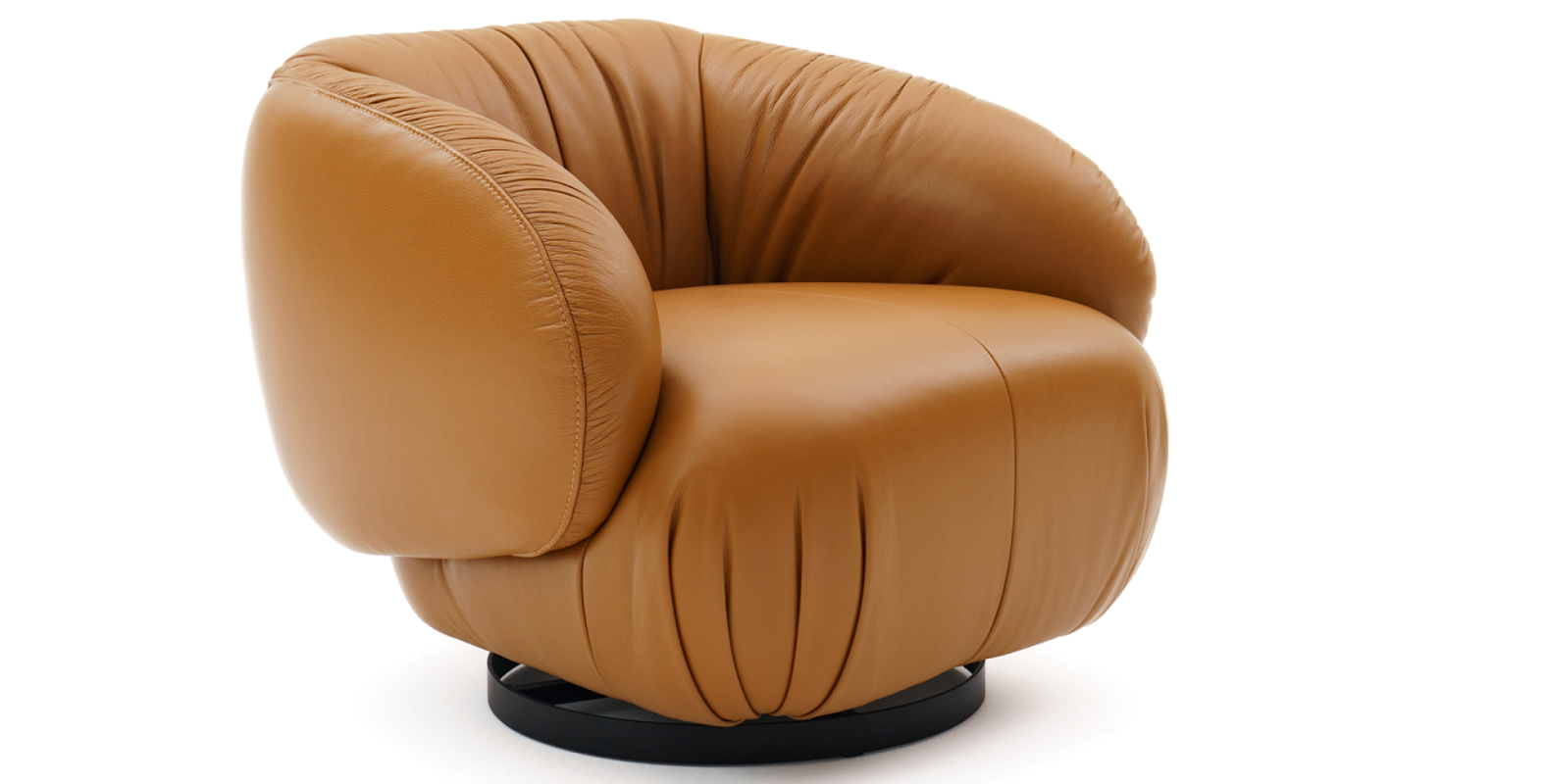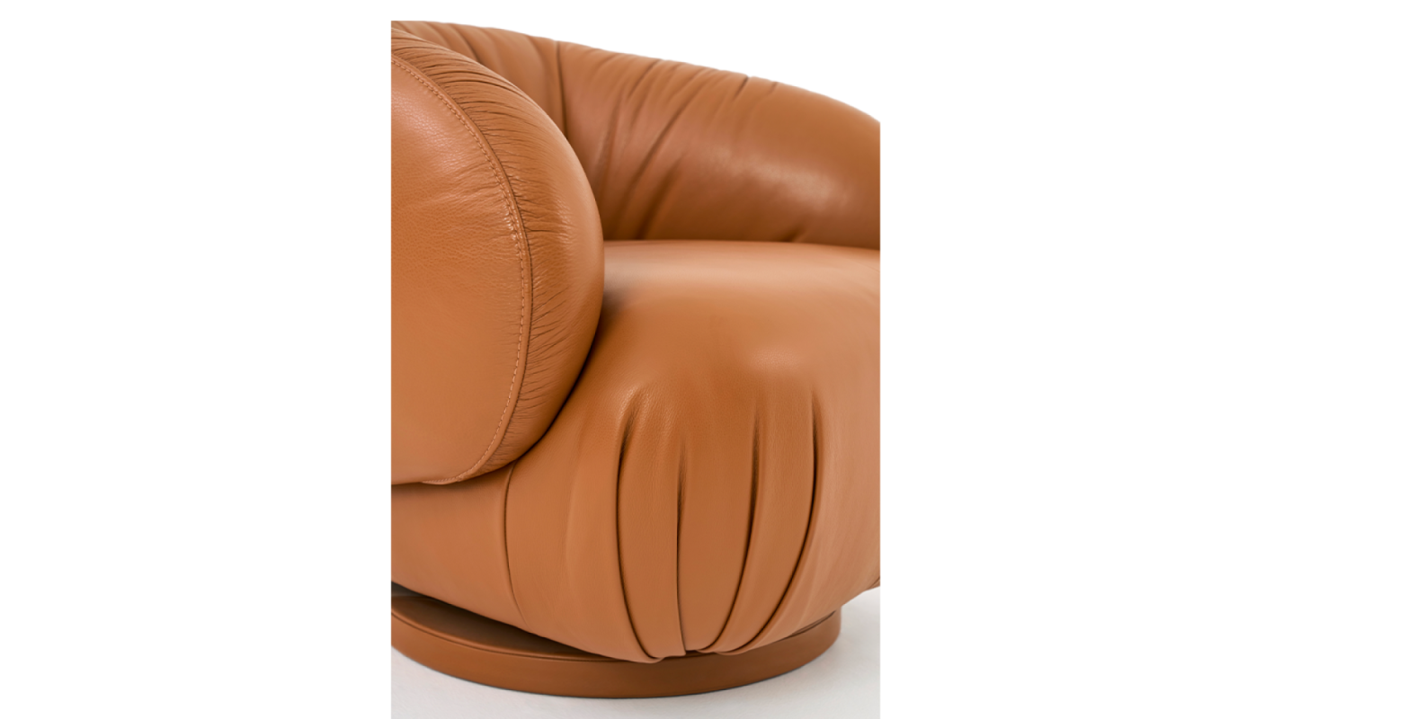 A Poltrona Semente une proporção compacta e presença delicada. Seu visual solto valoriza a tapeçaria com plissados que revelam o cuidado artesanal e a riqueza de textura. Com mecanismo giratório, oferece dinamismo e conforto, integrando-se ao espaço com leveza e personalidade.