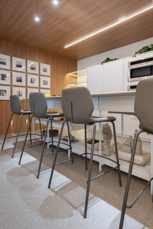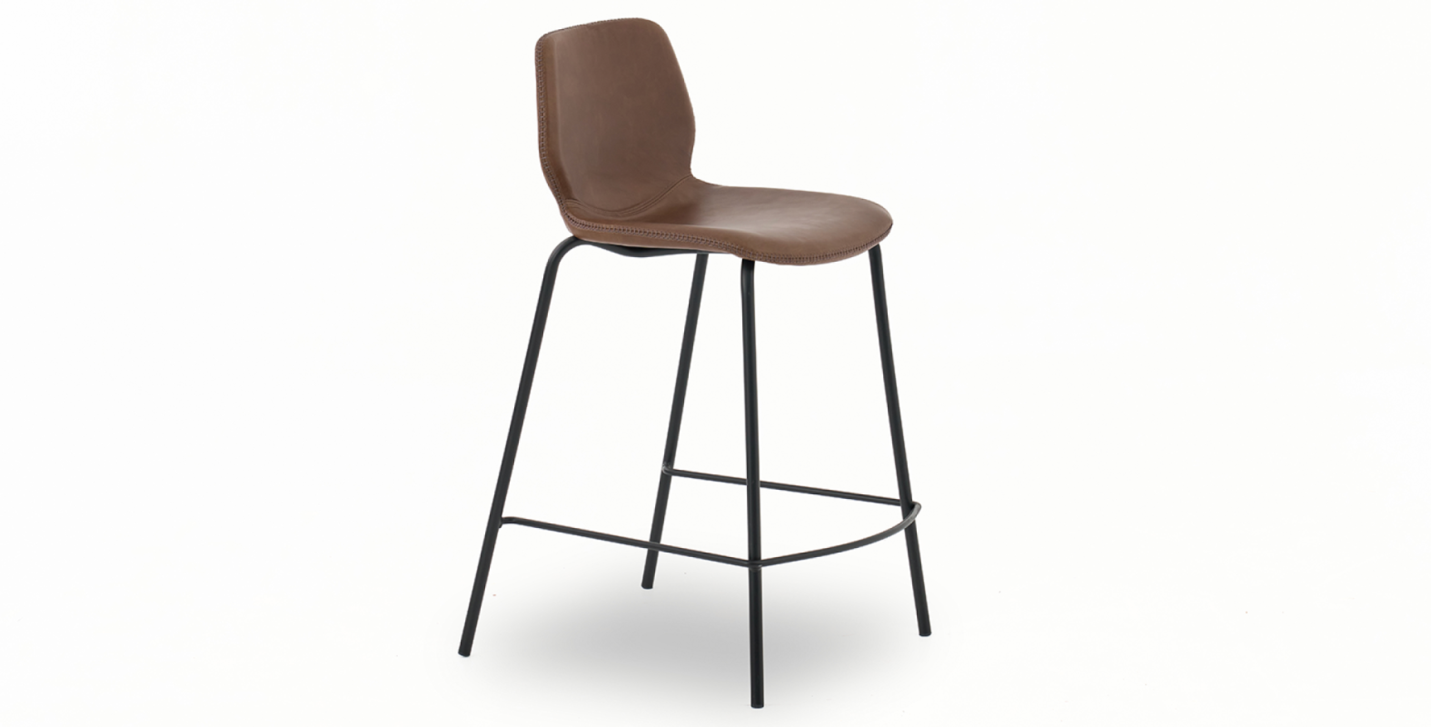 A banqueta Venere apresenta um design minimalista com detalhes sutis que conferem leveza à peça. Seus pés metálicos contrastam de maneira harmônica com o couro, criando uma combinação delicada e sofisticada.