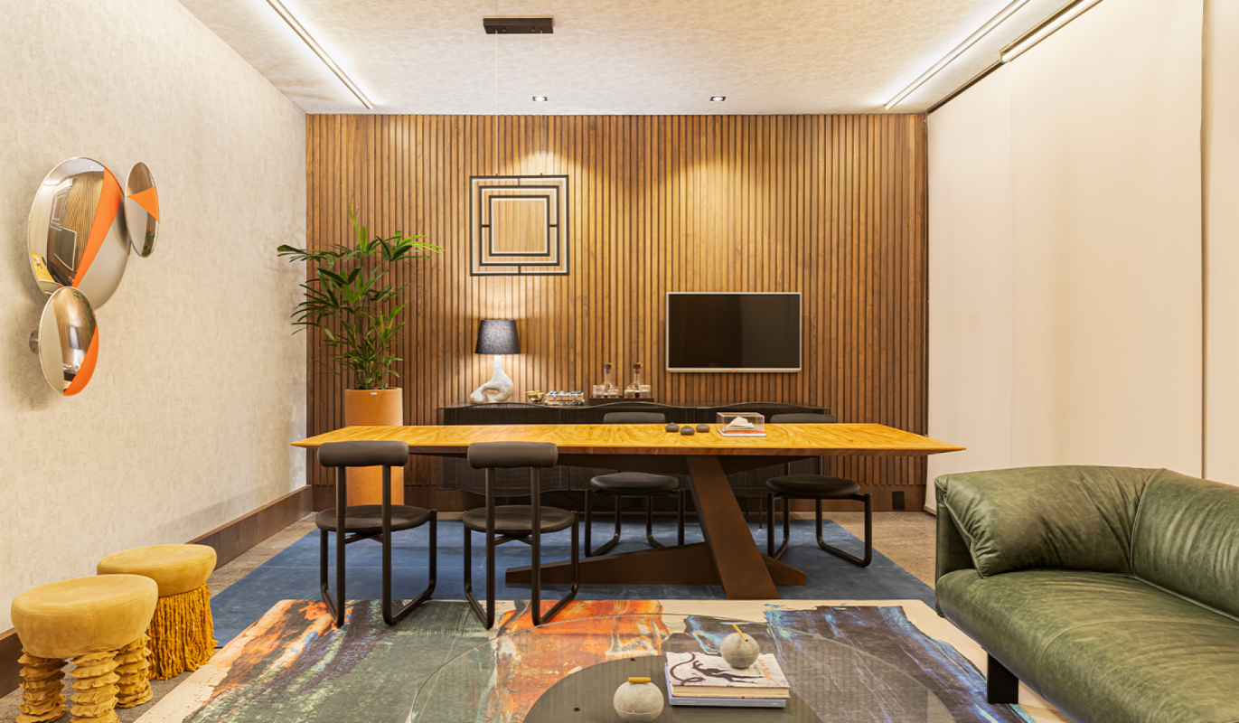 André Henning assina o "Business Place", um ambiente de 30 m? desenhado para atender às necessidades do trabalhador moderno - trazendo elementos que criam uma atmosfera acolhedora, sem perder a formalidade que um ambiente corporativo exige.