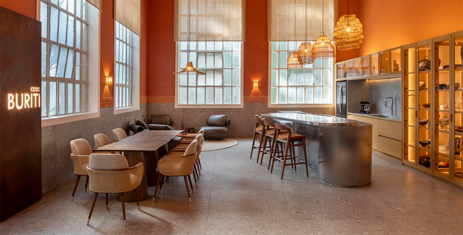 O espaço de 262 m², operado pelo Mesa Viva, é um refúgio urbano que celebra a conexão entre arquitetura e natureza, com jardins verticais, grandes aberturas e uma paleta que remete à terra, ao céu e à vegetação.