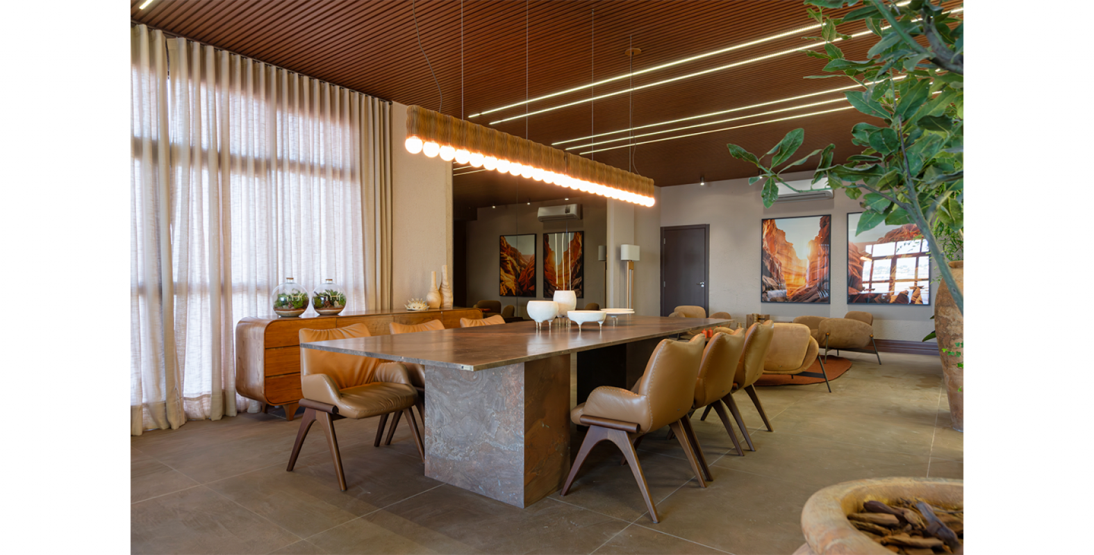 Assinado por Aclaene Mello, o ambiente propõe uma arquitetura consciente e afetiva, que valoriza a sustentabilidade, a inclusão e o Brasil como território criativo.