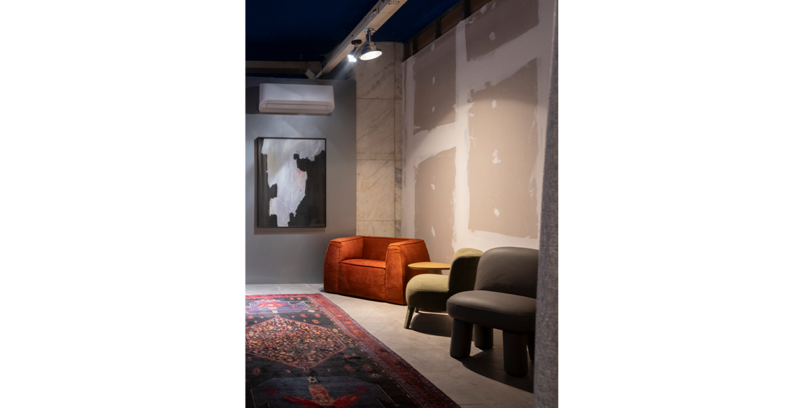 Seu ambiente é uma celebração sensorial, onde peças icônicas da Salva — como os sofás Igarapé e Tufa; as poltronas Refúgio, Galápagos, Cajá e Nômade; o banco Mar e o pufe Luce — compõem um espaço potente, fluido e acolhedor.
