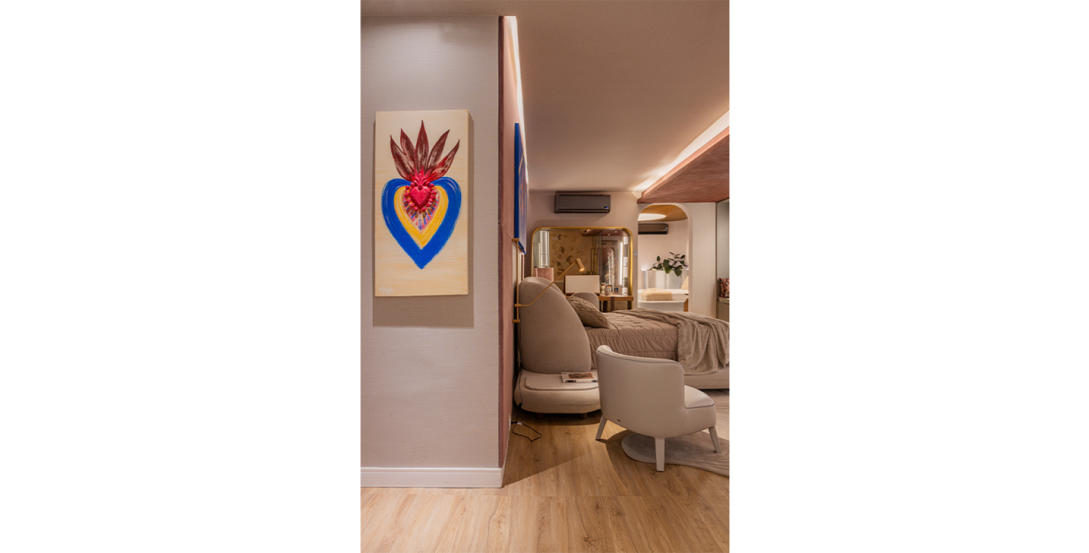 O ambiente mergulha no universo da adolescência, traduzindo a personalidade da Bia, o feminino e o delicado se encontram com a força e o disruptivo. Ao mesmo tempo também é um ambiente que promove conexão com a natureza. Através das formas orgânicas que estão presentes nos espelhos, tapete e aberturas; os vidros retroiluminados que simulam a entrada de luz natural, as plantas naturais e preservadas, o papel de parede que simula o linho natural, o quartzito extraído direto da natureza, vasos de barro e palha que utilizam materiais naturais e reaproveitados.