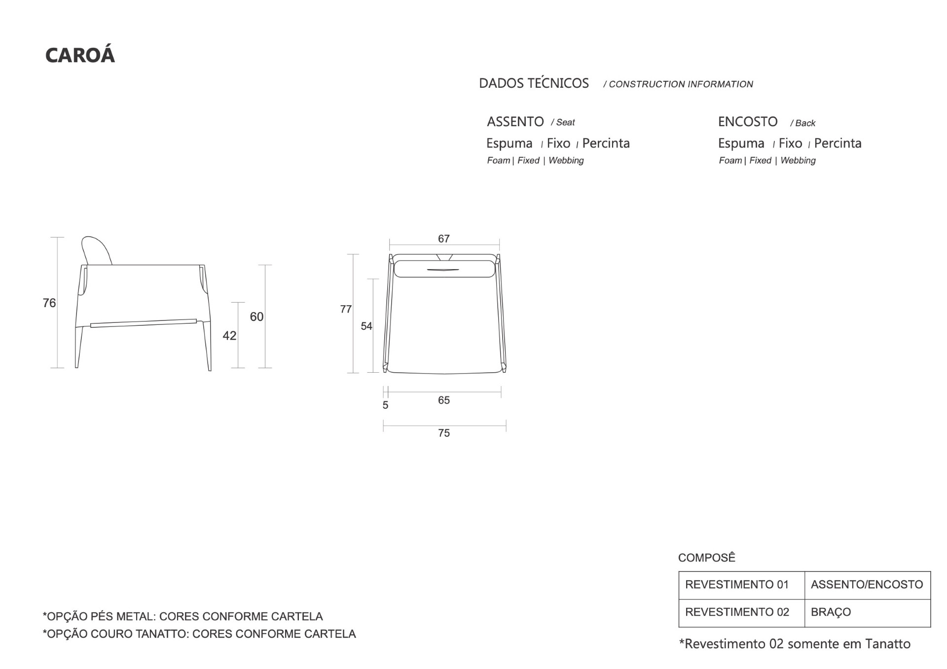 A Poltrona Caroá reflete a essência da Caatinga em seu design, com linhas inspiradas nos galhos da planta homônima. Assinada por Samuca Gerber, combina minimalismo e sofisticação, destacando detalhes sutis. Sua estrutura em metal cônico garante personalidade, enquanto o revestimento em couro, disponível em duas cores, adiciona requinte.