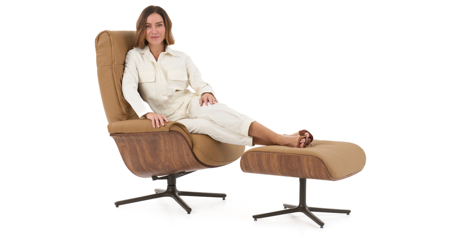 Assinada por Samuca Gerber, a Poltrona Greta revela a força e a naturalidade do couro em um desenho de presença marcante. Robusta no visual e leve no uso, conta com sistema reclinável que amplia o conforto. A base minimalista sustenta a forma, enquanto o pufe complementar convida ao relaxamento pleno.
