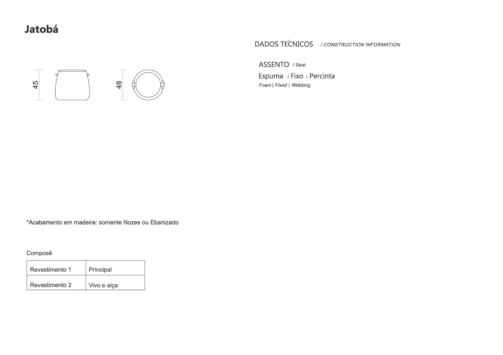 O Pufe Jatobá combina elegância e personalidade em um design arredondado e suave. A costura destaca suas formas, enquanto as alças decorativas adicionam um toque delicado e sofisticado à peça.
