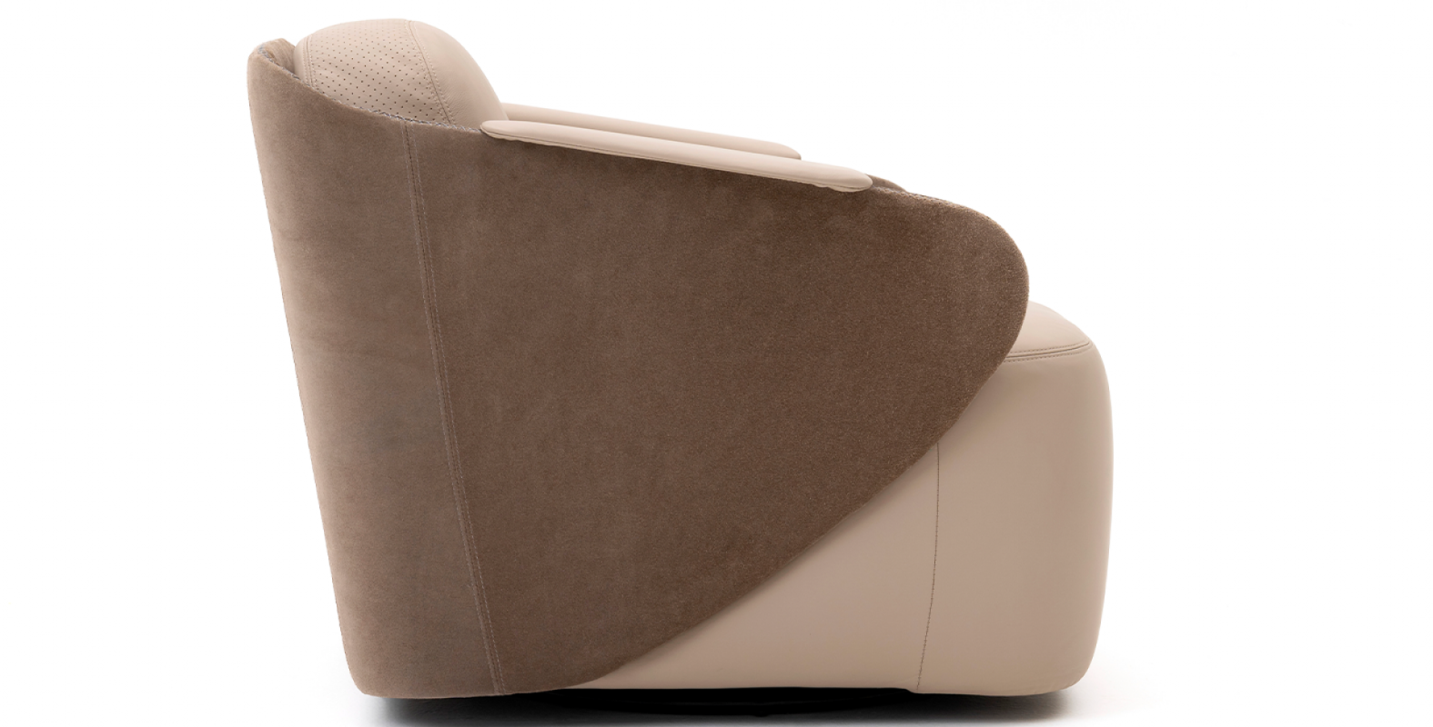 A Poltrona Manaí, inspirada no peixe-boi da Amazônia, é uma criação de Fabricio Roncca que une conforto e leveza. Suas formas arredondadas proporcionam um visual lúdico e acolhedor, enquanto o sistema giratório e os detalhes sofisticados elevam seu design.
