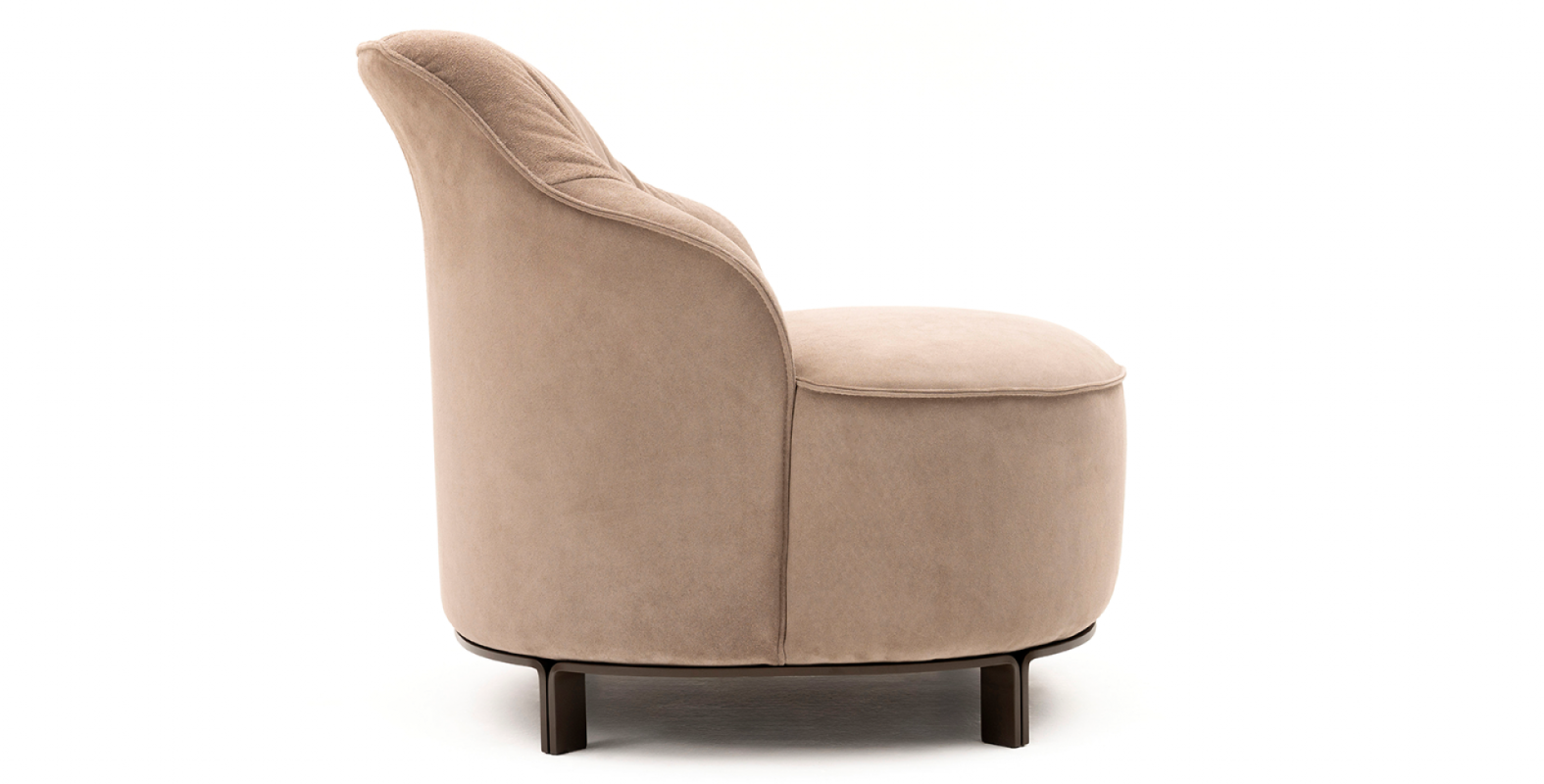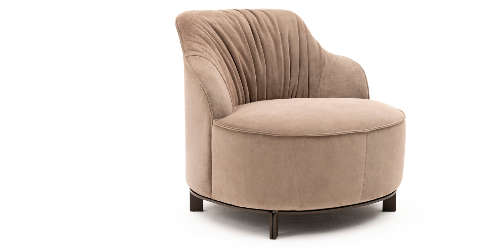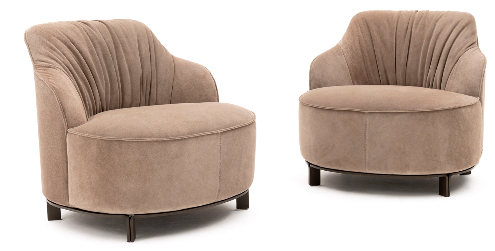 A poltrona Veredas, projetada por Jayme Bernardo e Dieedro, cativa pela delicadeza de suas formas e pelo acabamento drapeado, destacando a sofisticação do couro e a sua singularidade.