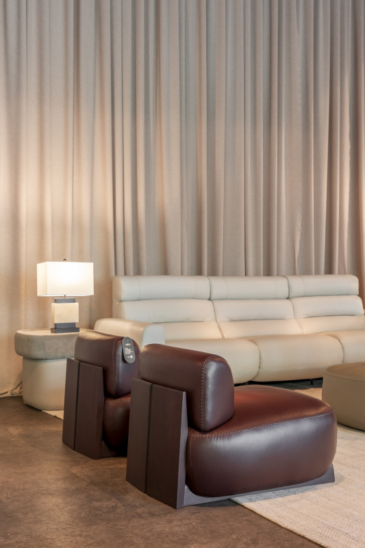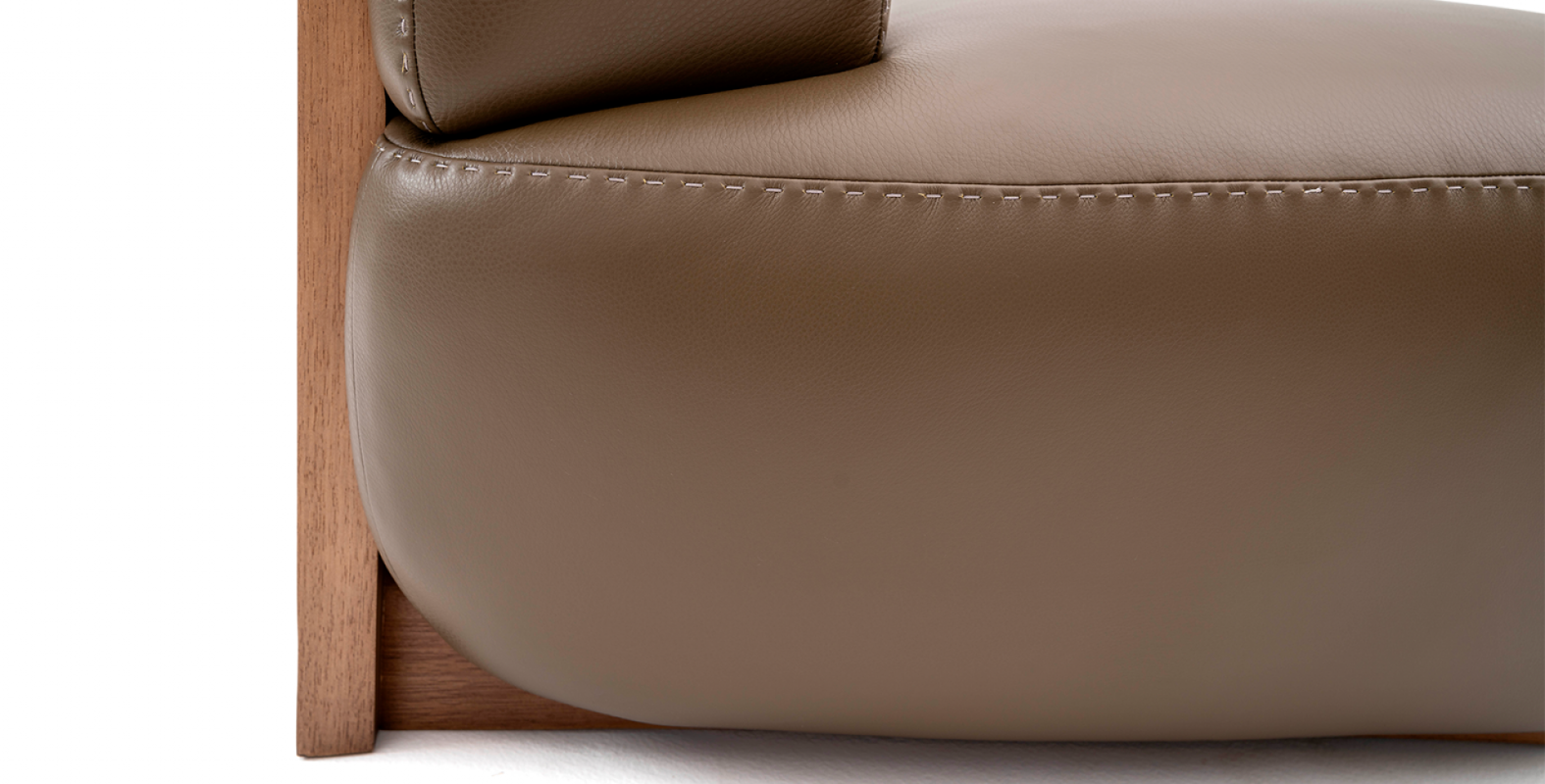 A poltrona Prosa é uma fusão harmoniosa entre os elementos e que a compõem. Ela se apresenta como um diálogo entre o couro e a madeira esculpida que a envolve, criando uma interação única entre materiais que se complementam.