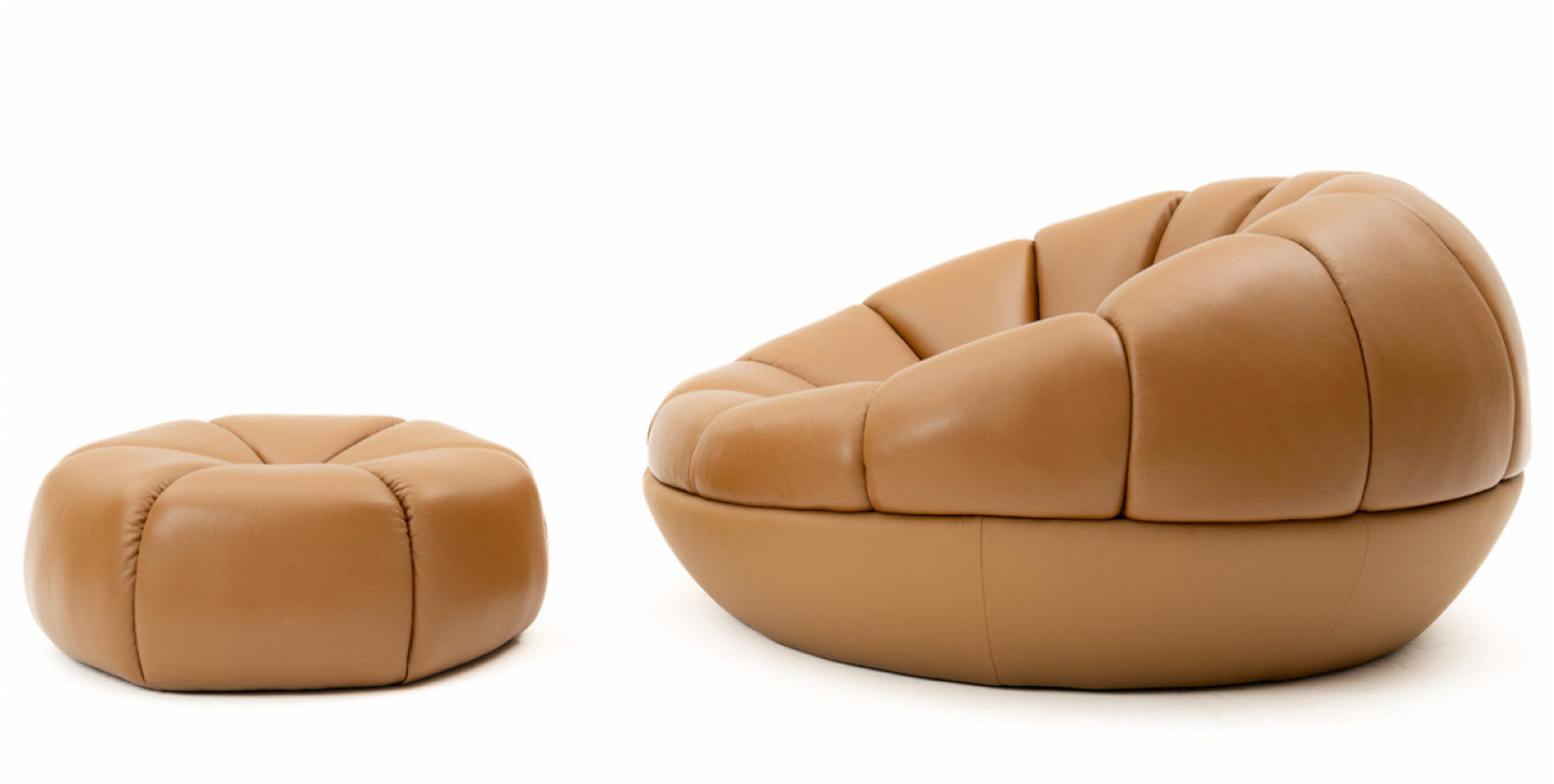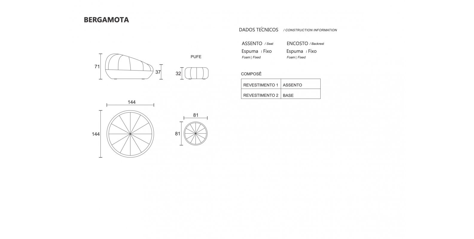 Fazendo referência direta à cultura regional do Rio Grande do Sul, o pufe Bergamota remete ao fruto ícone do estado, que endossa os invernos frios e acompanha bons momentos de famílias e amigos em todos os cantos. A característica singular dos gomos do fruto descascado foi aplicada nas formas curvas e volumosas da poltrona, que convida ao relaxamento e descontração. Uma peça única, cheia de significados e com um protagonismo encantador que marca presença e provoca o sentar de forma ímpar.