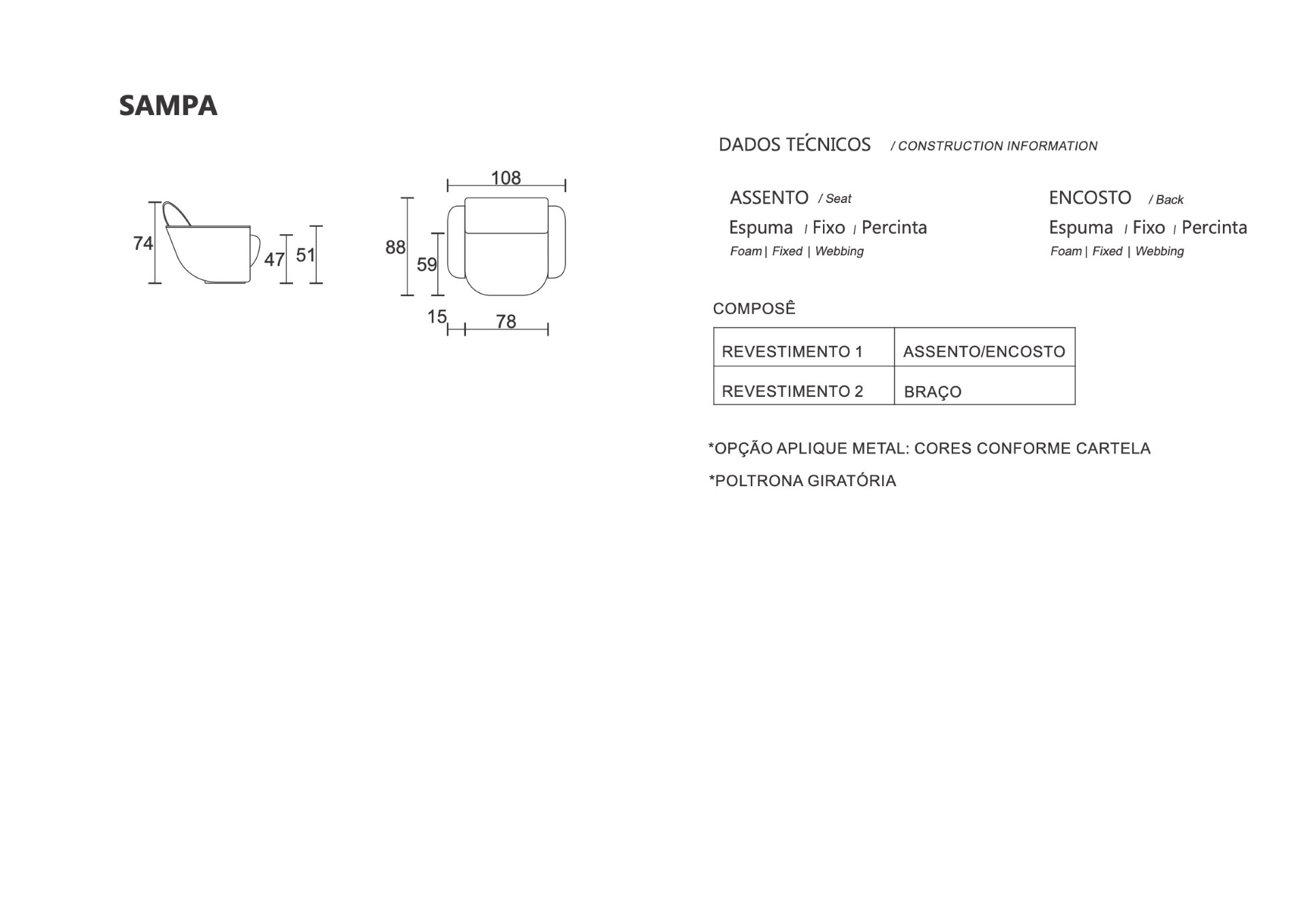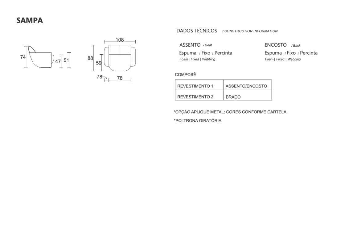 Uma poltrona que captura a essência da cidade cosmopolita e vibrante. Sampa foi o nome escolhido, por ser uma abreviatura carinhosa para a famosa cidade brasileira, que incorpora a diversidade, a energia e o estilo único.