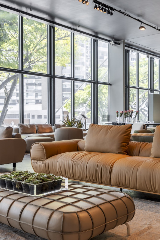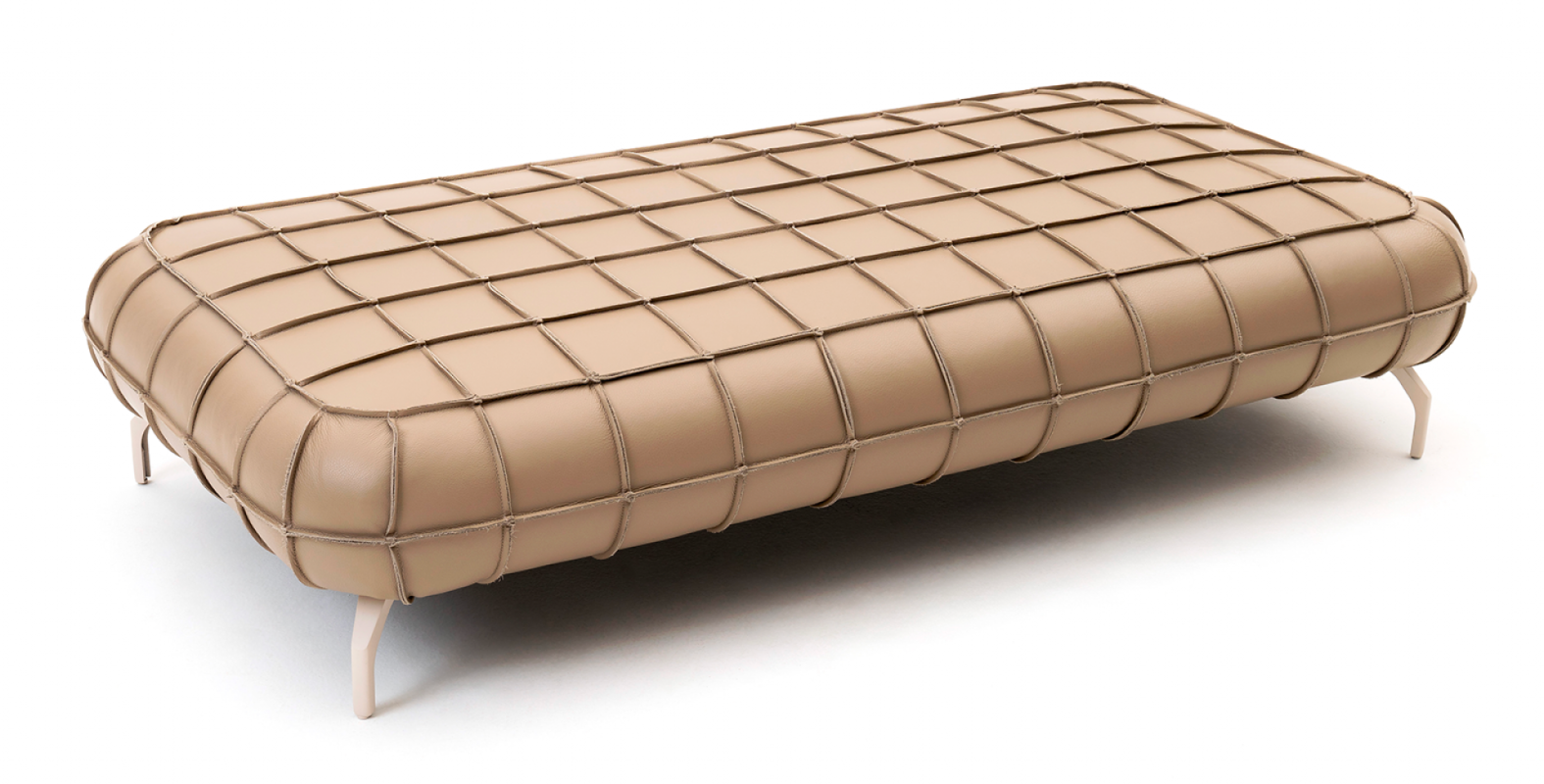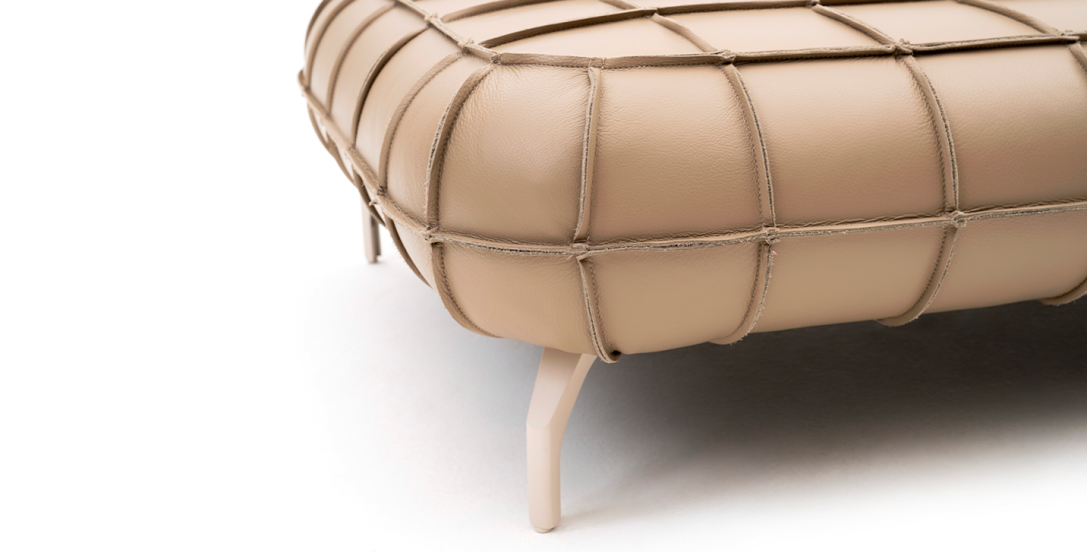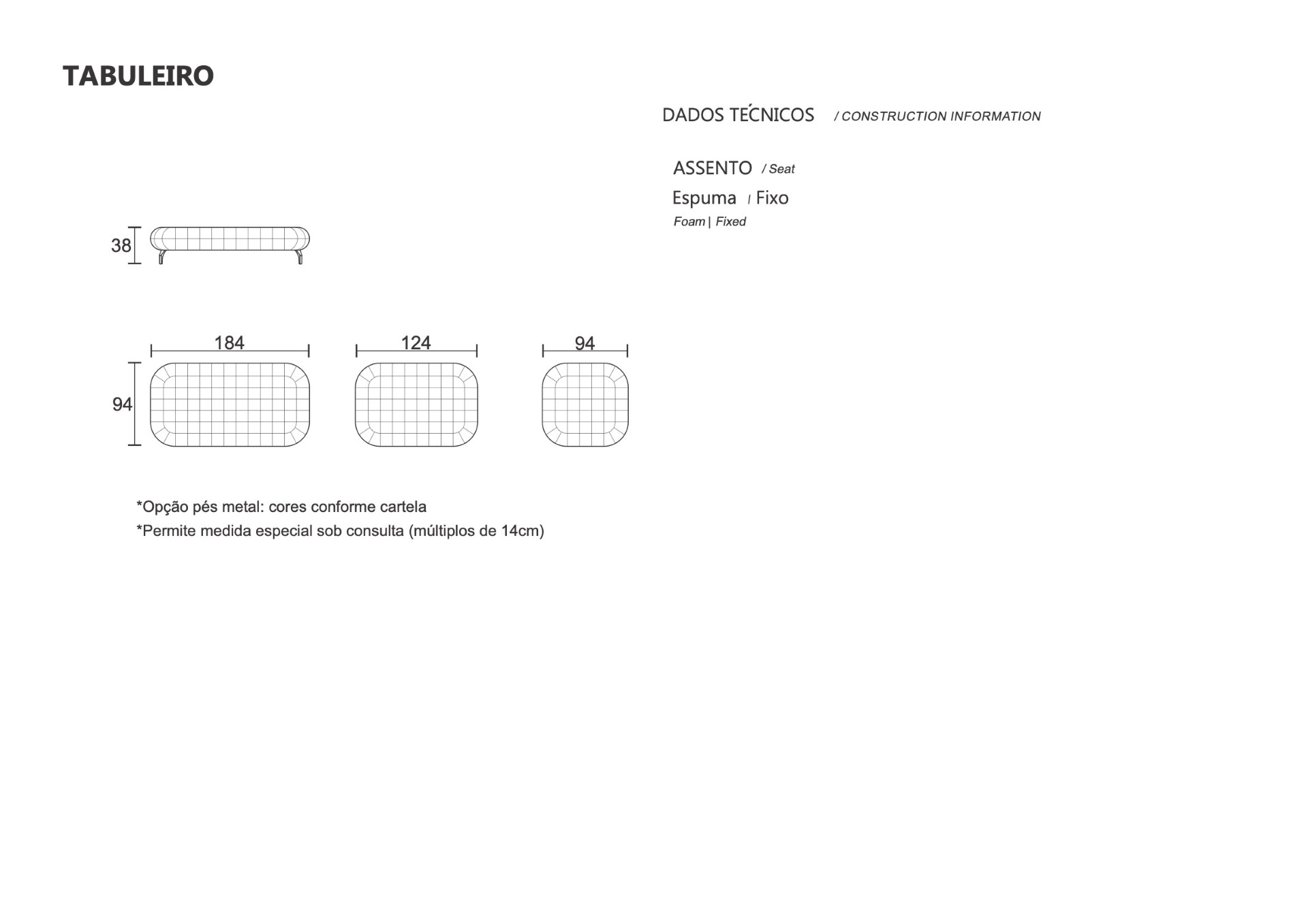 Seus pés em metal, personalizáveis em diversas cores, e a composição refinada do revestimento, trazem sofisticação e um toque artesanal.