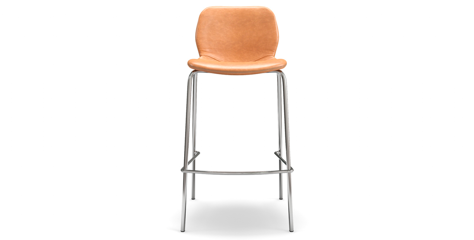 A banqueta Venere apresenta um design minimalista com detalhes sutis que conferem leveza à peça. Seus pés metálicos contrastam de maneira harmônica com o couro, criando uma combinação delicada e sofisticada.