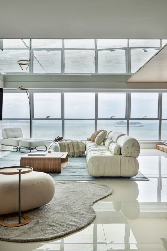 Harmonizando o design com a natureza: o espaço concebido pela arquiteta Natalia Xavier celebra a fusão entre o mundo do design e a exuberância da paisagem litorânea.