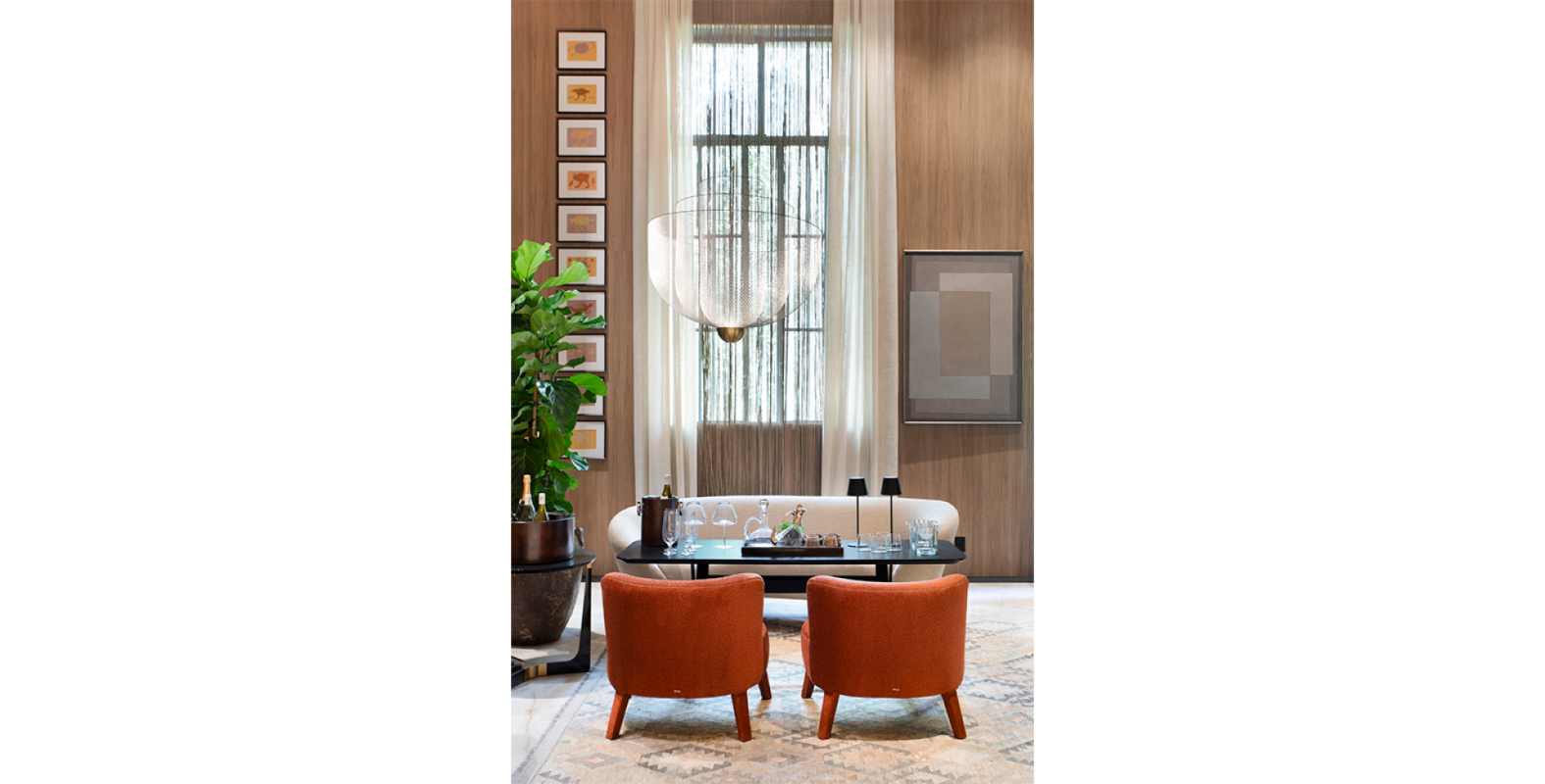 Na área do bar, surge um espaço mais intimista: a composição com um sofá compacto e as Poltronas Cajá é uma releitura afetiva de uma viagem da arquiteta a Veneza. As formas curvas e a escala acolhedora evocam o clima das salas de estar venezianas, pensadas para a convivência. Com seu design orgânico e toque contemporâneo, as Cajá reforçam a proposta de um morar sensorial, onde cada detalhe carrega intenção.