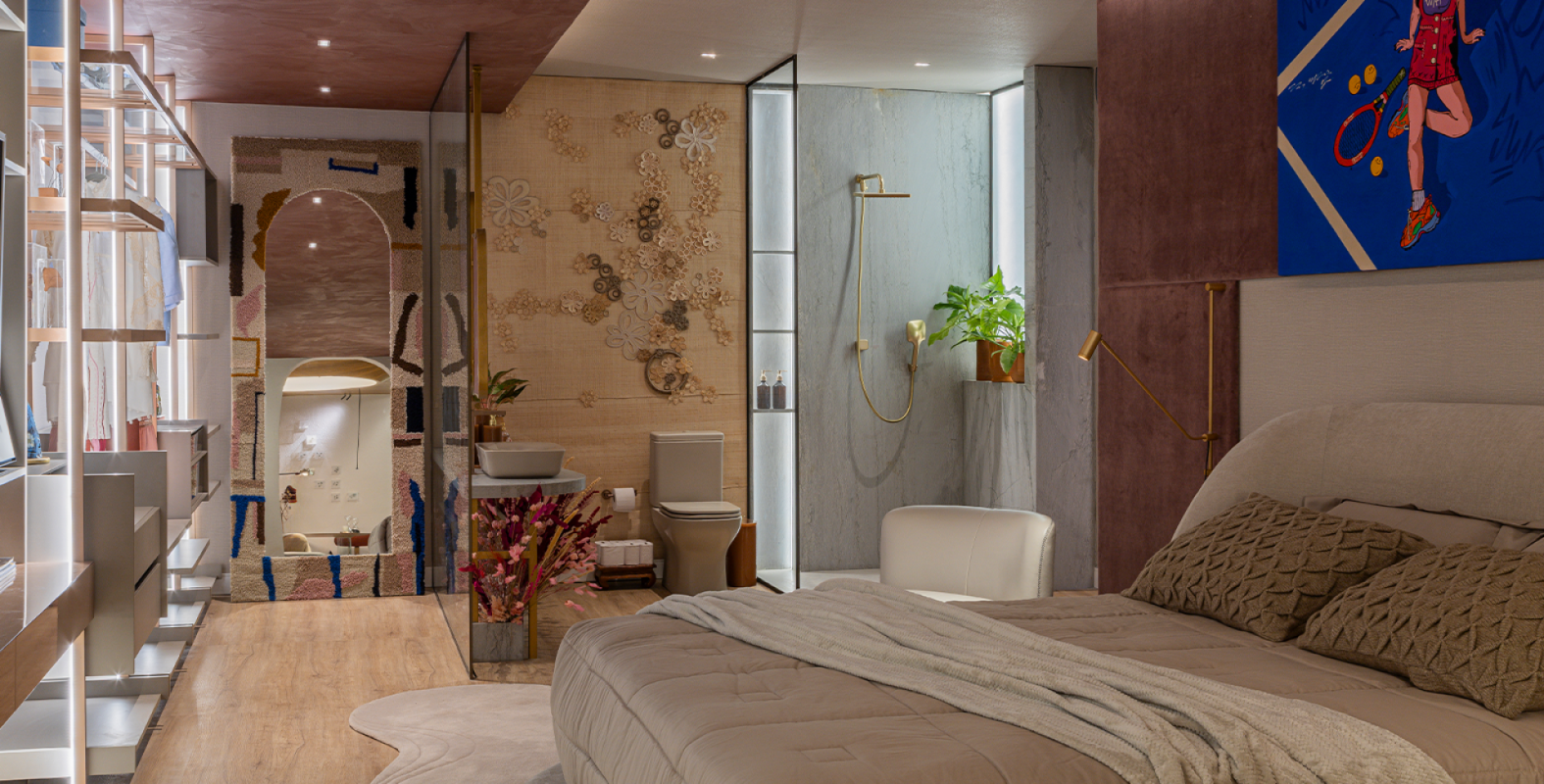 O ambiente mergulha no universo da adolescência, traduzindo a personalidade da Bia, o feminino e o delicado se encontram com a força e o disruptivo. Ao mesmo tempo também é um ambiente que promove conexão com a natureza. Através das formas orgânicas que estão presentes nos espelhos, tapete e aberturas; os vidros retroiluminados que simulam a entrada de luz natural, as plantas naturais e preservadas, o papel de parede que simula o linho natural, o quartzito extraído direto da natureza, vasos de barro e palha que utilizam materiais naturais e reaproveitados.